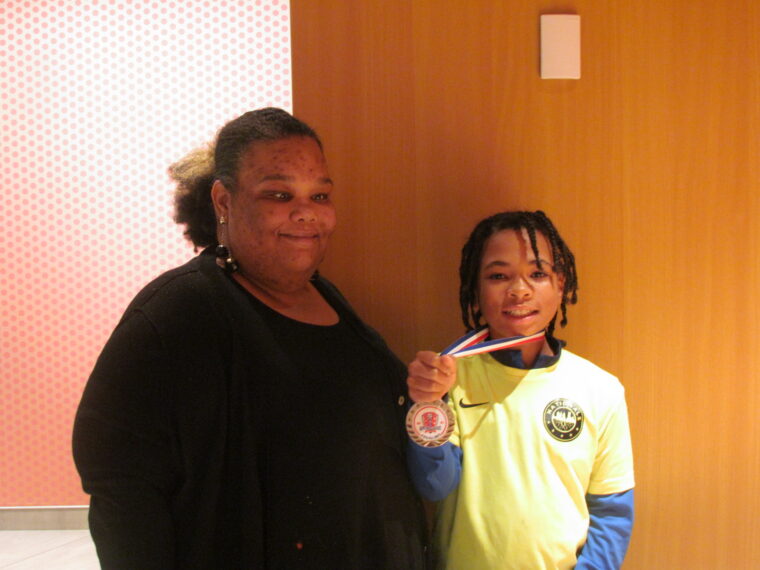 Black’s son, Gavin Banks, loves soccer with an intensity and was recently invited to join the Genesee 2014 Boys Red National Soccer Club (named after the team’s birth year). He was asked by a coach at Powers Catholic High School to join the national club after the coach saw him playing soccer at a 4-day soccer camp he learned of because his older sister, 14-year-old Gabrielle Banks, was participating in a cheerleading camp.