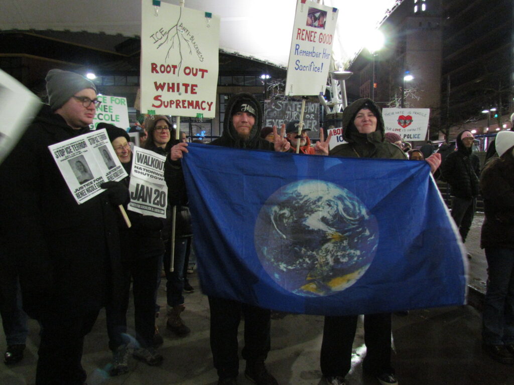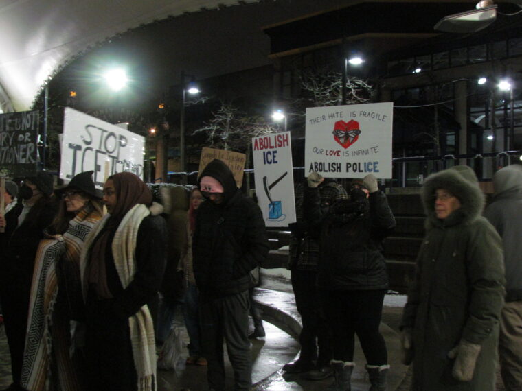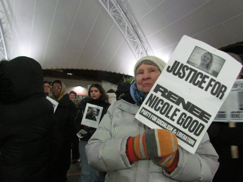 On a cold, snowy day, well over 100 people recently gathered at the UM-Flint Ice Rink for a vigil and rally honoring the lives of Renee Nicole Good, Keith Porter and all people harmed or killed by Immigration and Customs Enforcement (ICE).