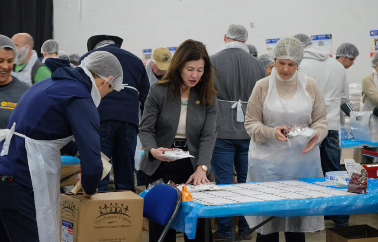 Kristen McDonald Rivett helps pack a box. - Rayshawn Riley, on behalf of US Senator Elizabeth Slotkin MI