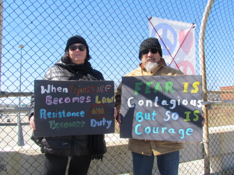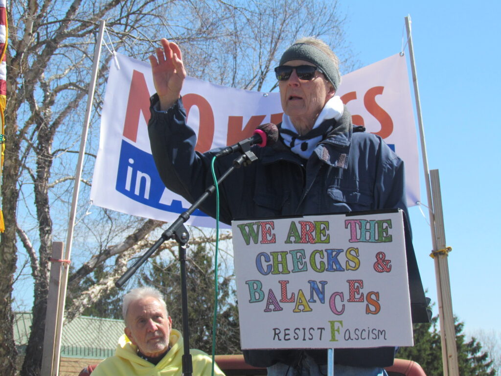 In downtown Flint, the ‘Bridge Brigade’ has come every Friday for the past 57 weeks to the Beach Street bridge over I-69, downtown Flint. They were also there for the Saturday rally. The focus is on bringing joy and enjoying the company of like minded people, and hanging anti-King signs as well as peaceable signs for the drivers to see as they pass below on I-69. You are welcome to join them. Be prepared for good conversation and waving at the passer-bys. Bring a lunch, and clean up after yourself when you leave!