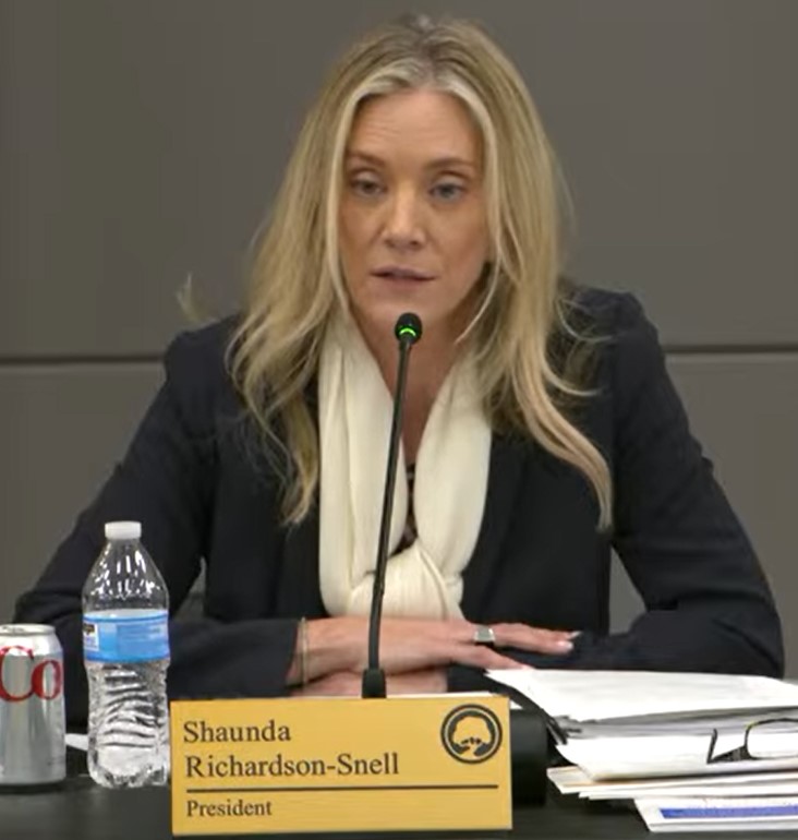 Attorney Carey DeWitt said the allegation Richardson-Snell passed out unsolicited religious literature to students and faculty should, at this point, still  be investigated by an outside attorney if a written complaint is submitted from someone with firsthand knowledge. This came after Trustee Art Reyes asked Richardson-Snell whether she had passed out such literature and Richardson-Snell did not respond.