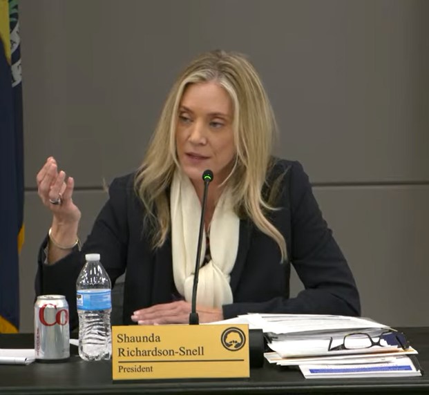 Attorney Carey DeWitt said the allegation Richardson-Snell passed out unsolicited religious literature to students and faculty should, at this point, still  be investigated by an outside attorney if a written complaint is submitted from someone with firsthand knowledge. This came after Trustee Art Reyes asked Richardson-Snell whether she had passed out such literature and Richardson-Snell did not respond.