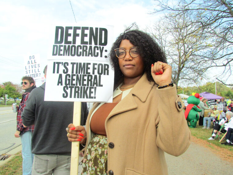 Keisha Hernandez of Swarts Creek, Nelson’s aunt, said: “I’m just here because I feel we need to save our democracy…We all have rights. It’s not just one group of people that have rights. I feel we’ve got to stand up for everybody, especially the immigrants. This land was founded by immigrants. This land was stolen…I’m just really passionate about my country, and it’s going downhill because of what’s going on.”