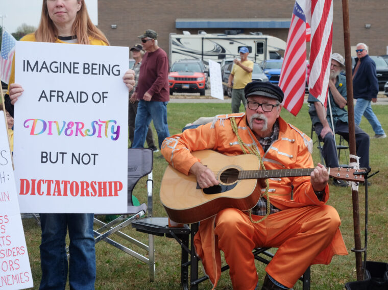 “The Congress and the judiciary are kind of caving,” she added. “As time has gone on since January, we see the immigration issue, the troops being sent to cities, these ICE (U.S. Immigration and Customs Enforcement) people acting outside of the law and all the things add up. We don’t see the Constitution being followed. We see the law being applied differently to different groups. We came out to say ‘no’ and to say ‘yes’ to democracy.”