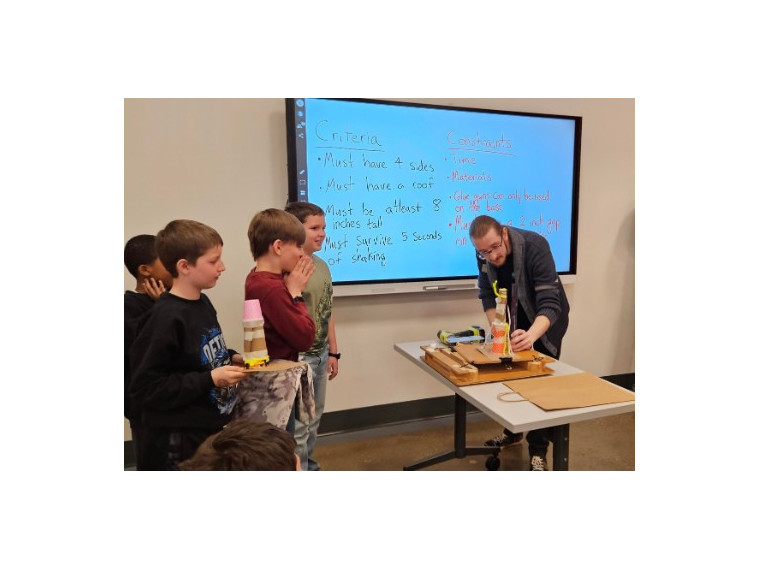 Featured photo: Fourth grade students from Dieck Elementary in Swartz Creek, MI, learn about seismic wave energy as they take part in an earthquake engineering challenge called “Earthquake Construction,” taught by Sloan educator Eli LaRoque. In this STEM workshop, students work in teams to construct an earthquake resistant tower that could survive the earthquake simulator. Photo courtesy of Michigan Economic Development Corporation and Güd Marketing